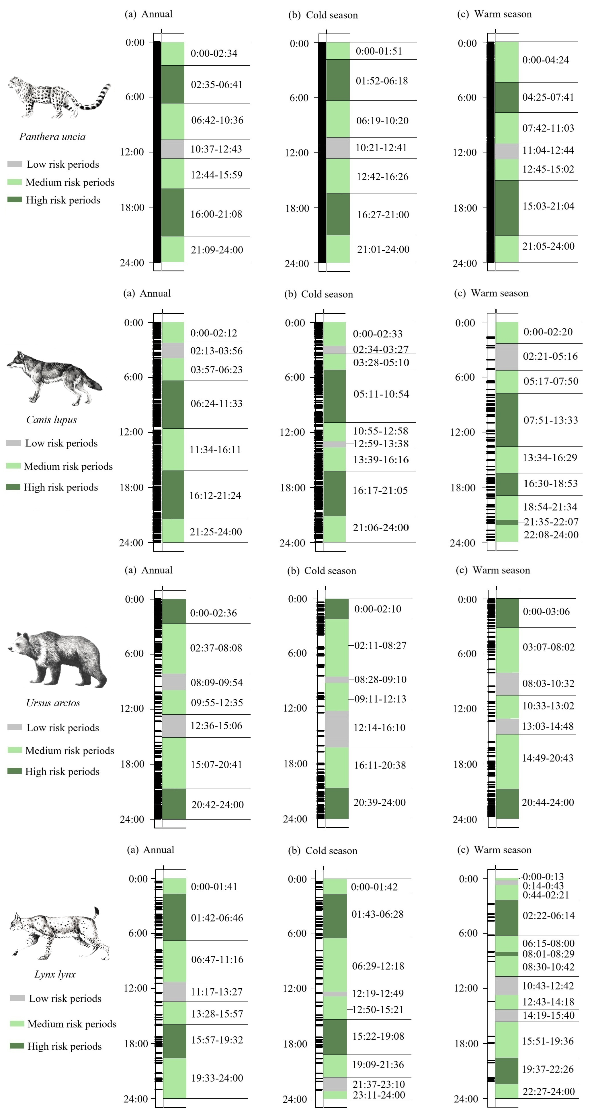 三江源地區(qū)四種食肉動物潛在肇事的風(fēng)險(xiǎn)時(shí)段
